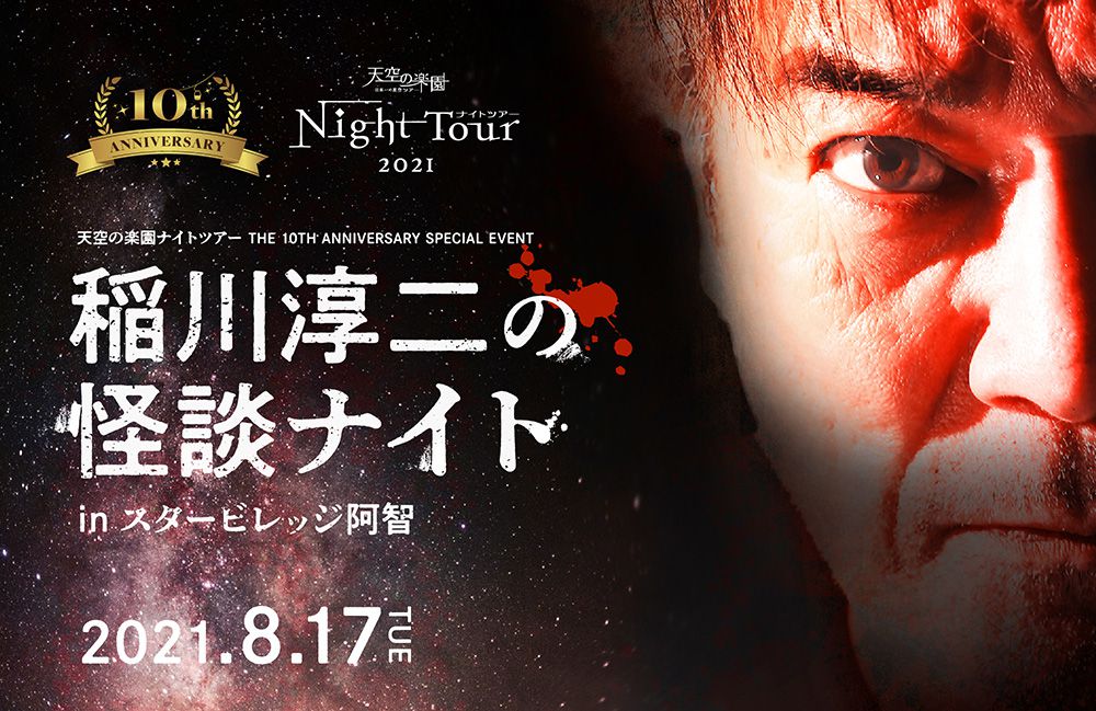 スタービレッジ阿智誘客促進協議会(会長:熊谷秀樹(阿智村長))と、信越放送株式会社 (代表取締役社長 渡辺雅義)は、2021年8月17日(火)に、天空の楽園 ナイトツアー会場の富士見台高原ロープウェイヘブンスそのはらにて、天空の楽園 ナイトツアー The 10th Anniversary スペシャルイベント「稲川淳二の怪談ナイト in スタービレッジ阿智」を開催いたします。